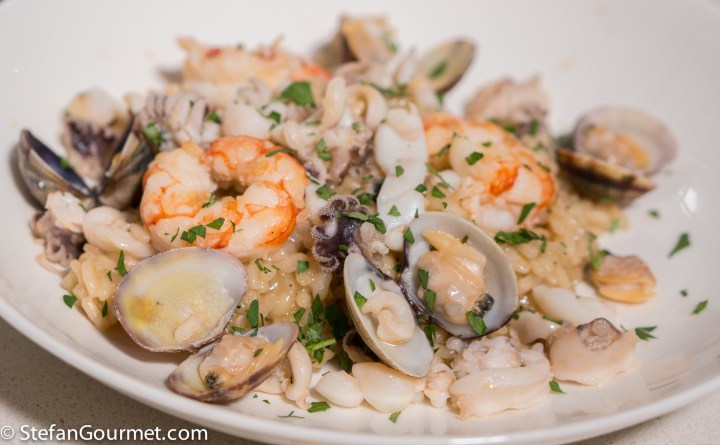 Italian Risotto ai frutti di mare differs from the Portuguese arroz de marisco (coming soon on the blog!) in that the Portuguese version is much more soupy.