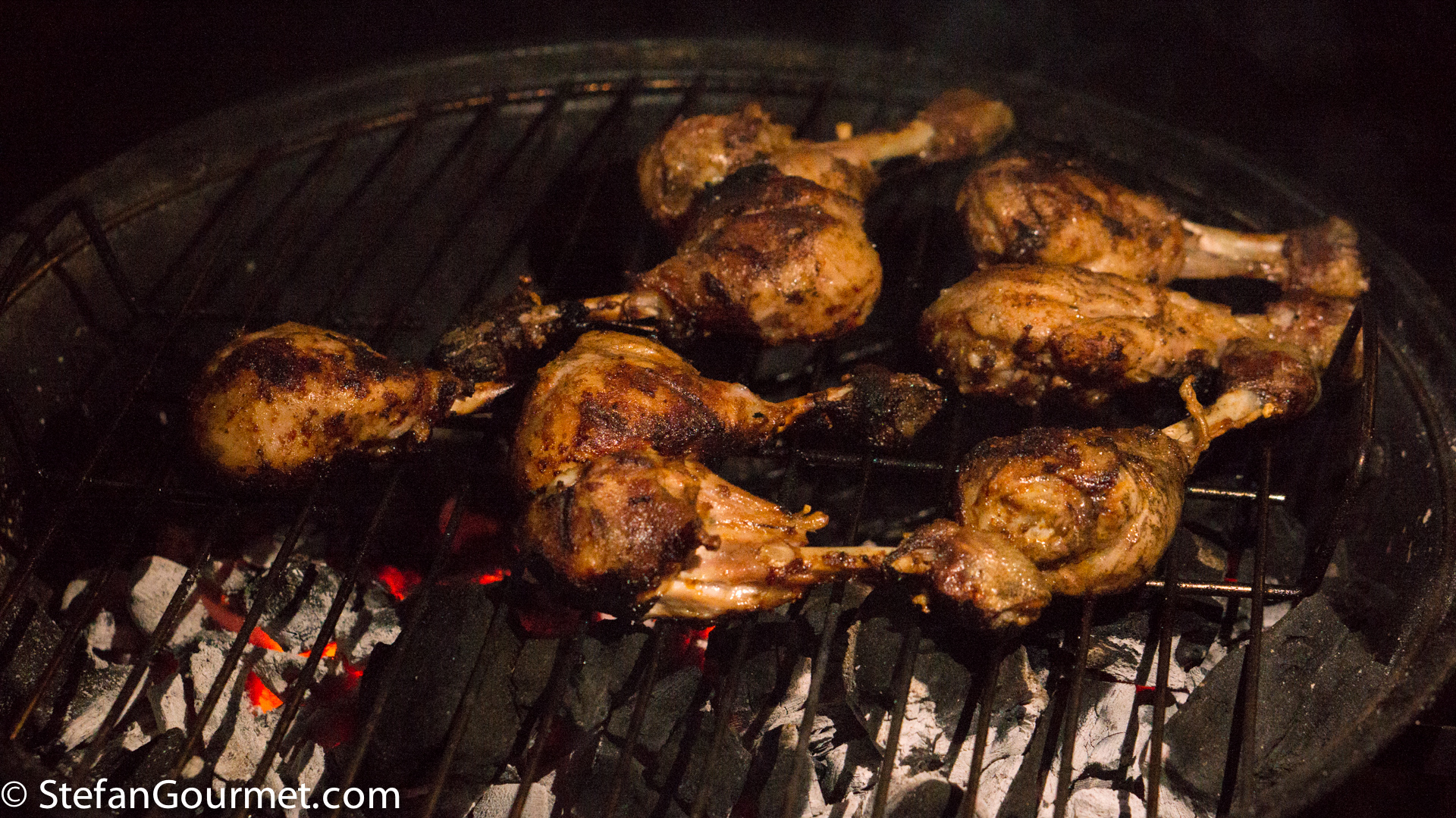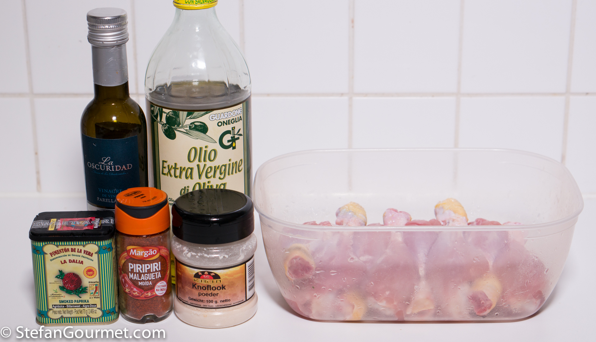I took a supply of piri piri back home, and did some experimenting to recreate it at home. I decided to use drumsticks, to have less bones. Wings would also be excellent. Here’s what I came up with.