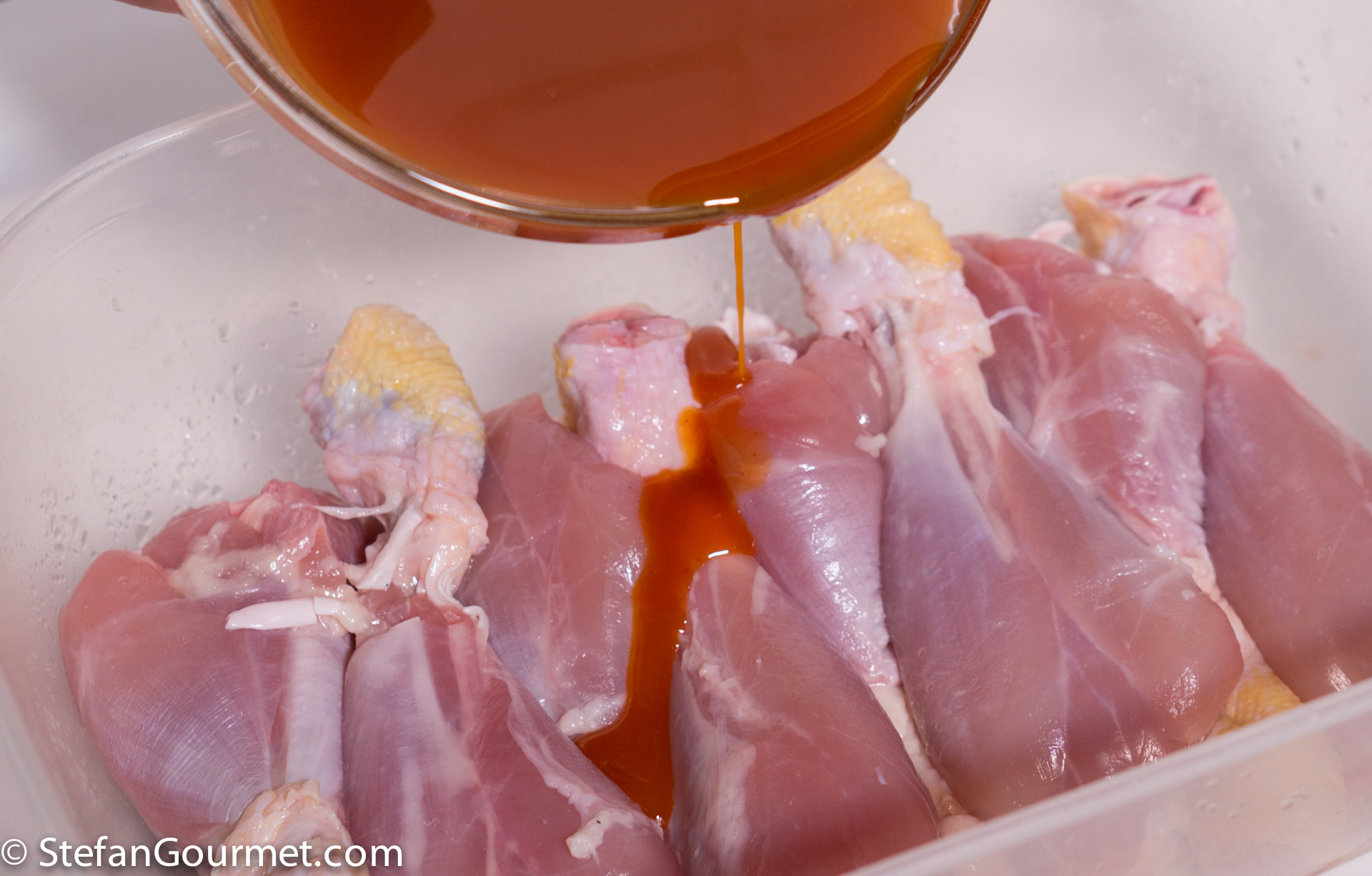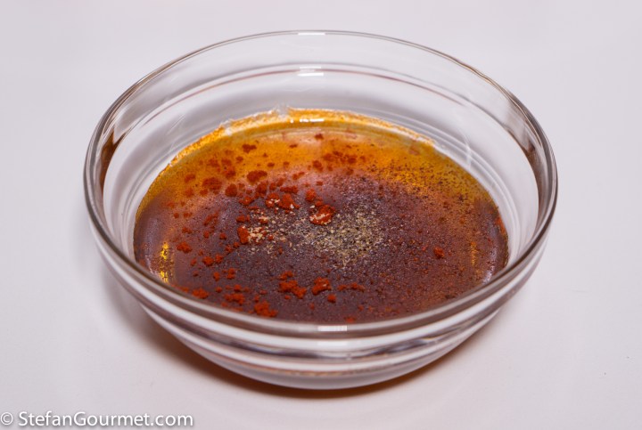 Combine the ingredients for the marinade in a bowl, and whisk to mix.
