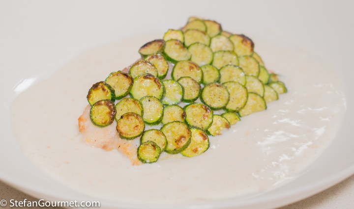 Cut the fish into bite size pieces. Season them with salt on both sides, and allow to sit while you prepare the pumpkin.