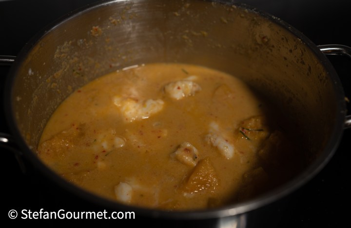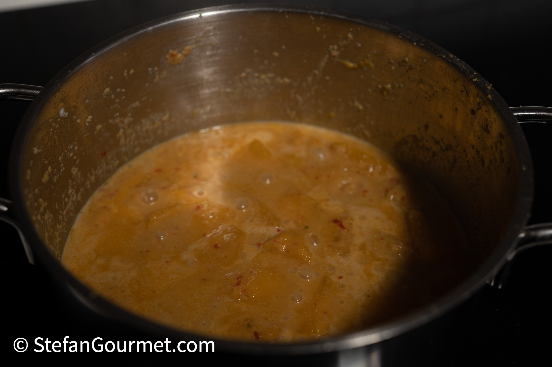 Cover and allow to simmer until the squash or pumpkin is tender (but not mushy). In my case this took about 20 minutes.