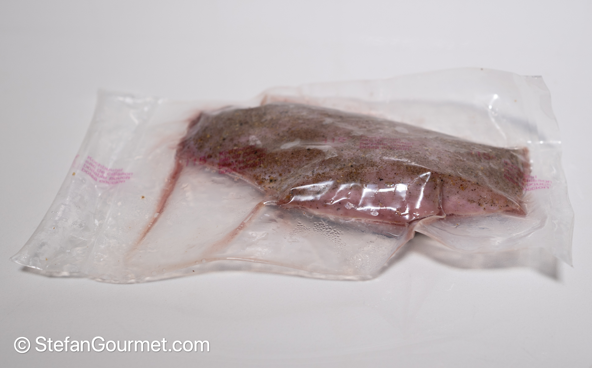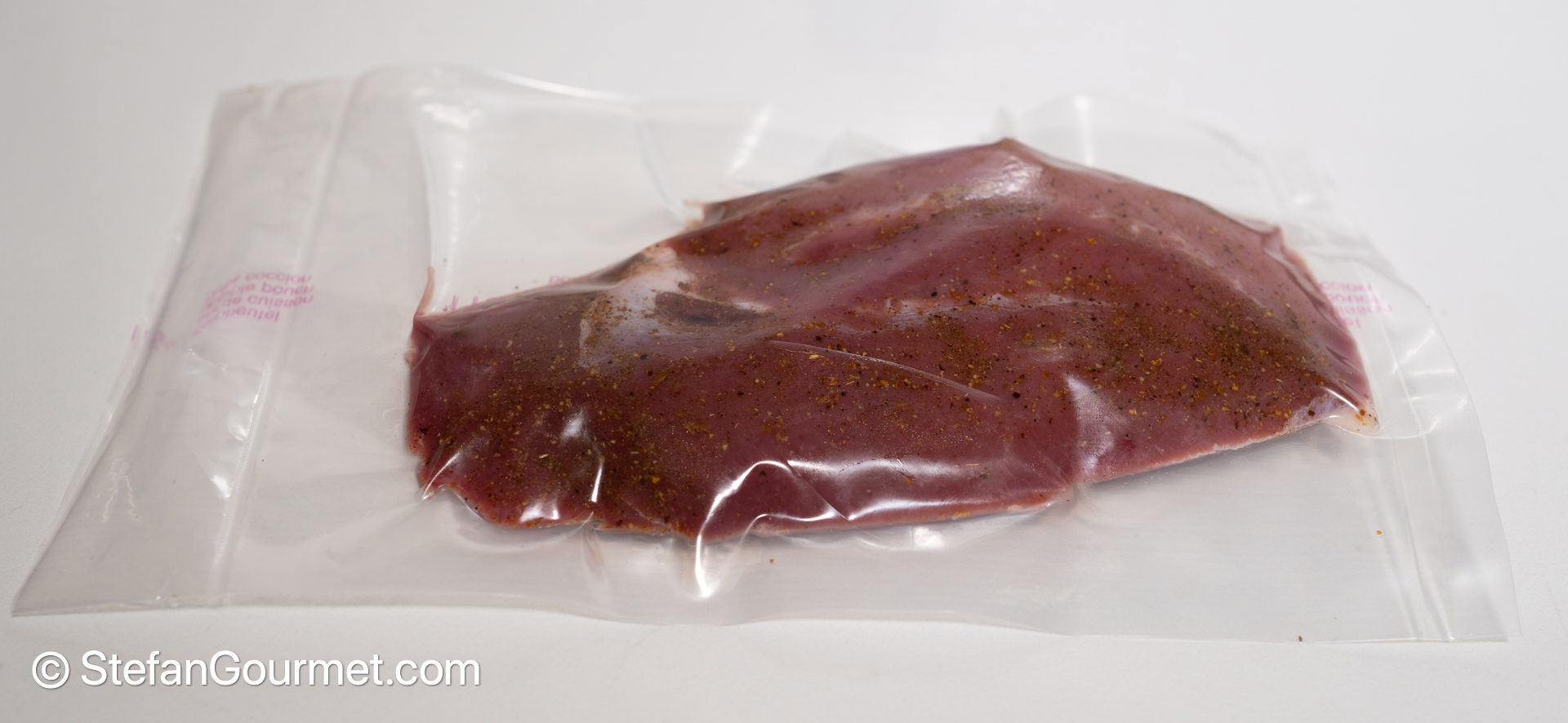 Season the meat with 1/2 teaspoon of table salt and 1/2 teaspoon of five spice powder, and vacuum seal. Reserve the skin.