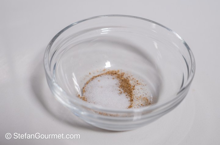 Mix 1/2 teaspoon of five spice powder with 1/2 teaspoon of salt in a small bowl.
