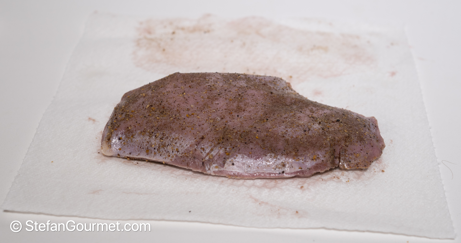 When the duck breast has been cooked sous vide, take it out of the bag and pat it dry with paper towels.