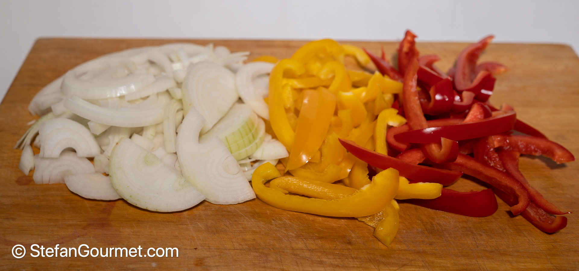 2 bell peppers (I used 1 red and 1 yellow), in strips