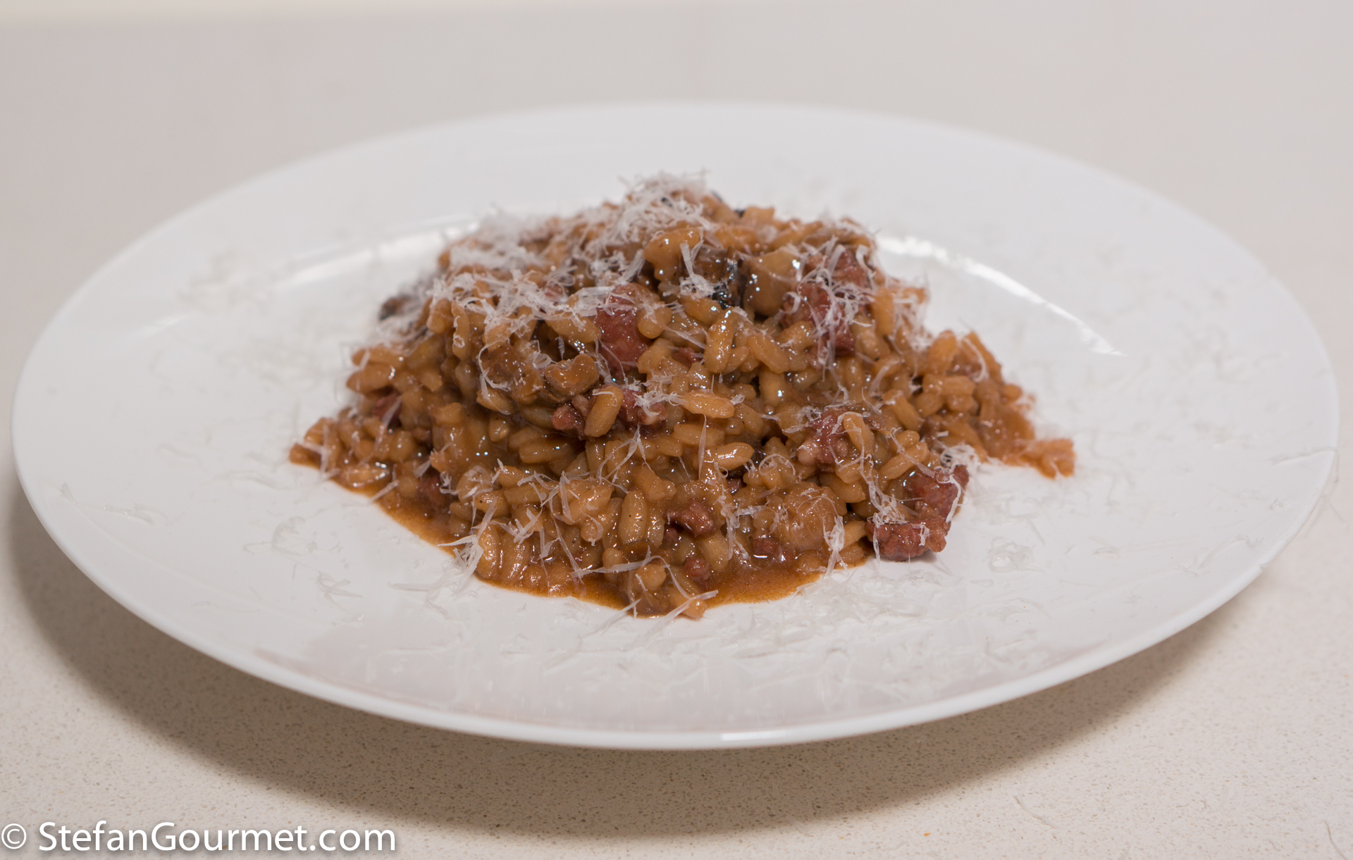 Risotto with sausage and porcini mushrooms.
