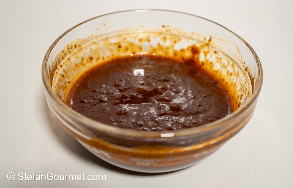Combine the ingredients for the sauce in a small bowl, and stir until the nam prik pao has dissolved.