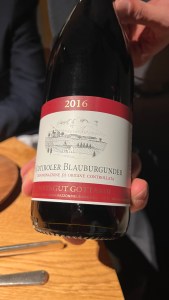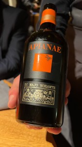 This ‘sforzato’ is made from dried Nebbiolo grapes in Valtellina. Sforzatos are often ‘blockbuster’ wines, but this one was elegant with wonderful aromas of Nebbiolo. It was like an excellent Barolo but without the harsh tannins, a good pairing for the dish because it went better with the creamy mustard sauce than a Barolo would have done.