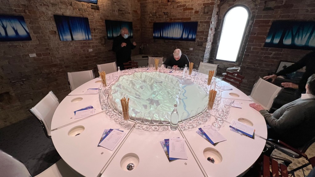 The 2017 riservas did not have an official label yet, because they will be bottled and released in February 2022. These were barrel samples that were bottled just for us to be able to taste them. In 2018 the cru were not bottled separately, and so those grapes (of higher quality) were used for the regular Barbaresco. This means that even though 2018 was not an exceptionally good year, the regular Barbaresco may even be better than in better vintages. I thought the 2018 was very nice with velvety tannins, whereas the 2017 had harsher tannins. The Rio Sordo MGA is located close to the river and is therefore known to be the most elegant of the crus made by the produttori. The Muncagota is further from the river and at a higher altitude. Even though it is only 200 meters away from Rio Sordo, the 2017 Muncagota clearly has a fuller body and is more like a Barolo. The 2016 is from a better vintages with a larger difference between day and night temperatures (important for aromatic expression), but right now the 2016 Muncagota appeared closed and difficult to enjoy.