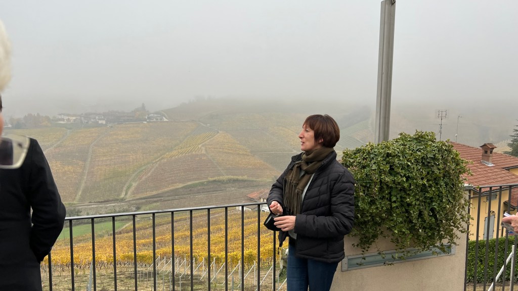 The next day started with a visit to the Enetoca Regionale del Barbaresco, where we had an explanation about Barbaresco in the very nice tasting room located in the characteristic tower in the village of Barbaresco (you can hardly see the tower in the photo because of the fog).