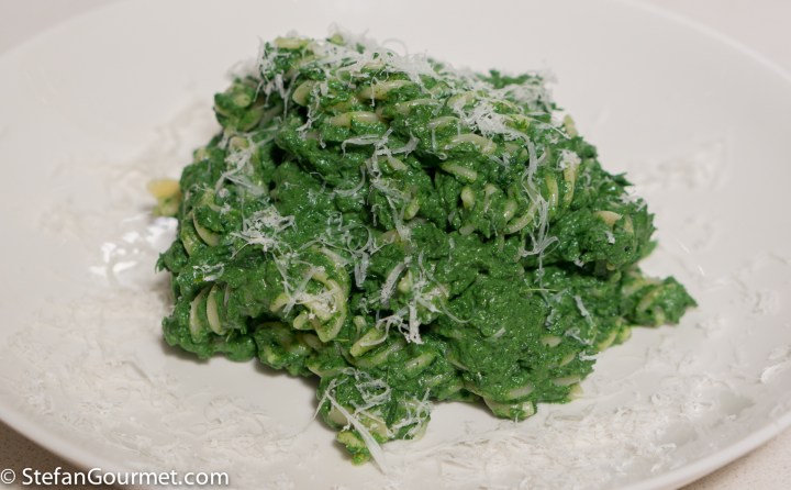 Fusilli with spinach, ricotta, and parmigiano is one of our favorite dishes that I make on a regular basis.