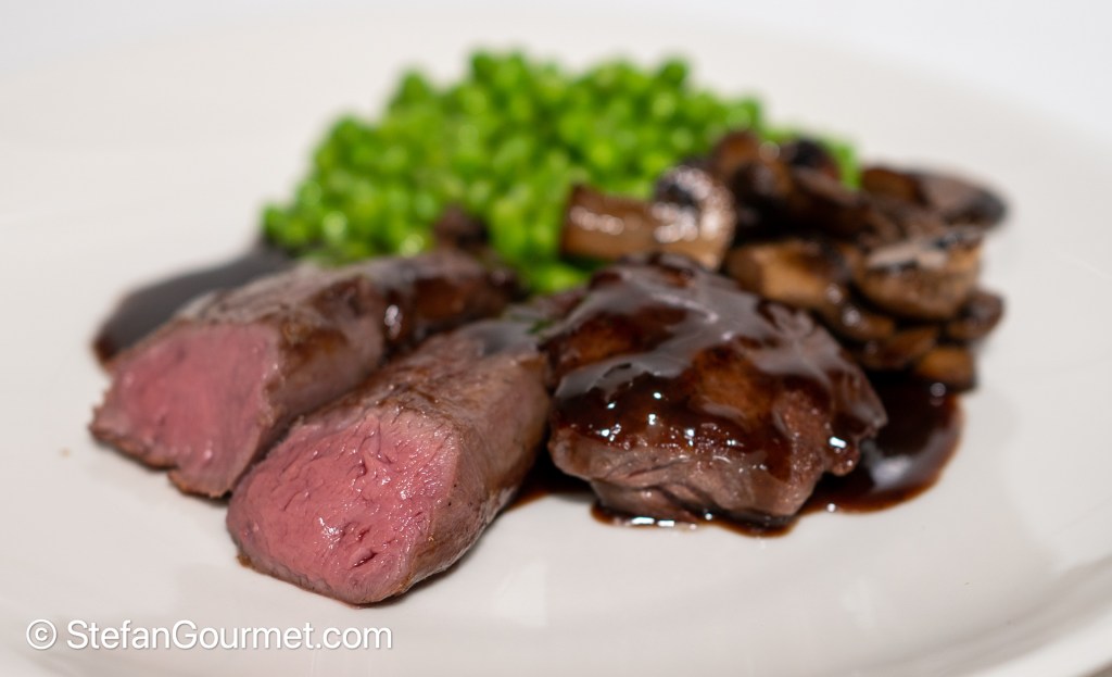 To accompany the Gaja Barbaresco I prepared roe deer venison, following this recipe. All Nebbiolo wines work well with red meat to soften the tannins. The roe deer fillet is extremely tender and more elegant than beef or regular venison.