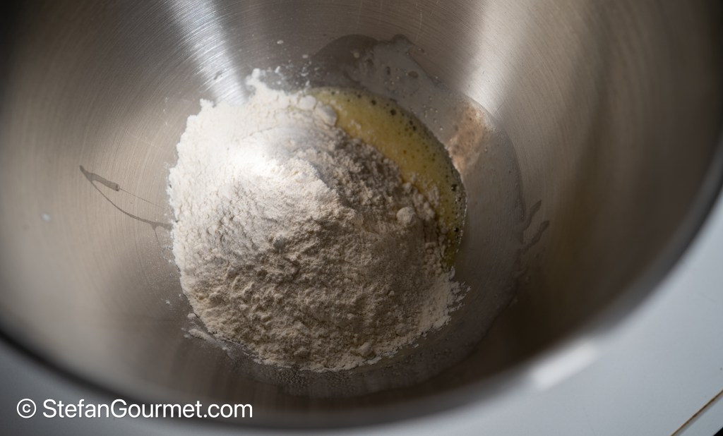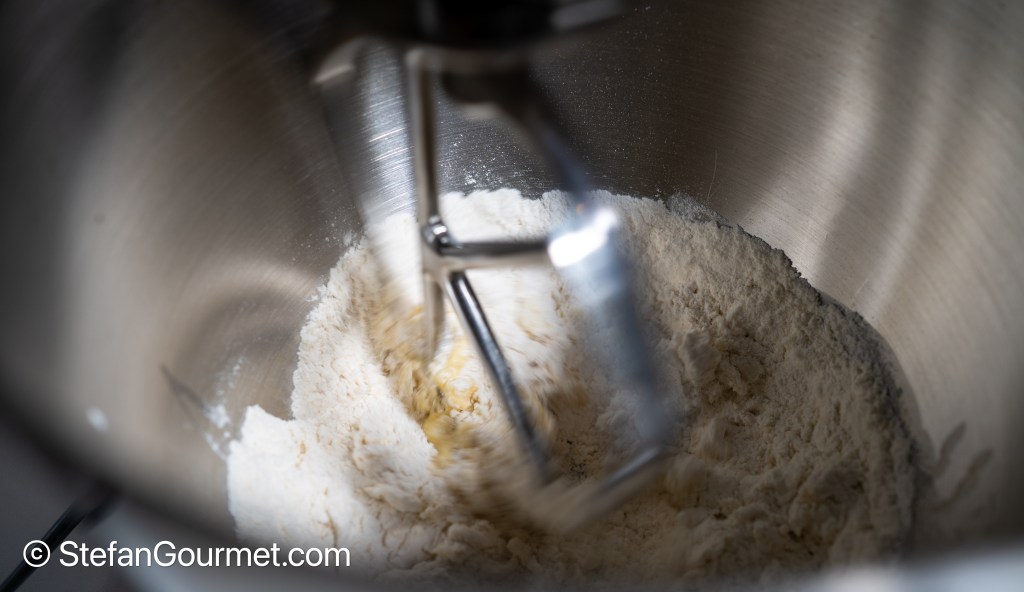 Place the flour, salt, and egg in the bowl of a stand mixer.