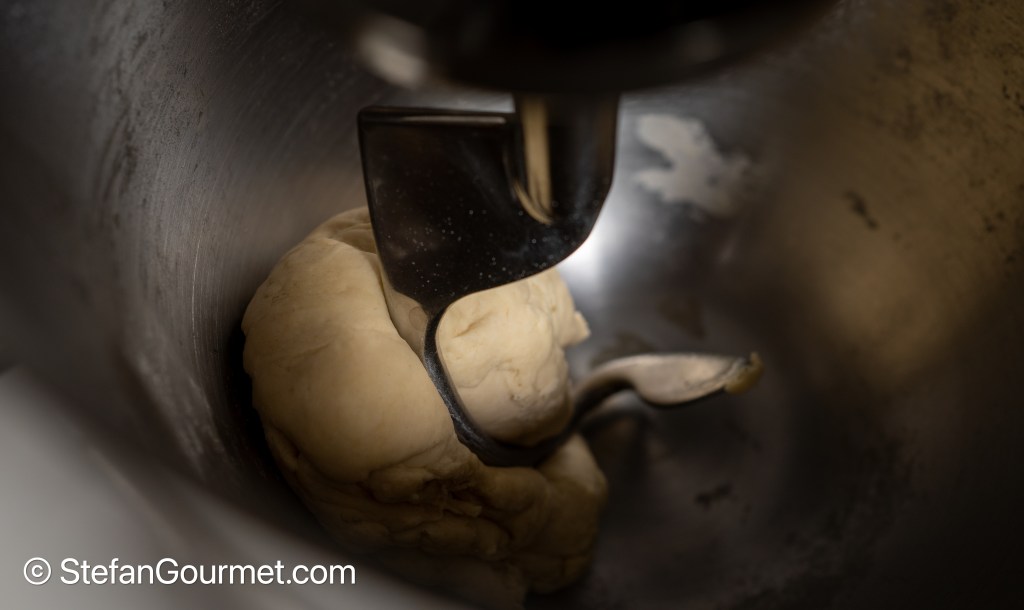 Switch over to the dough hook and knead on medium speed until the dough is smooth and elastic.