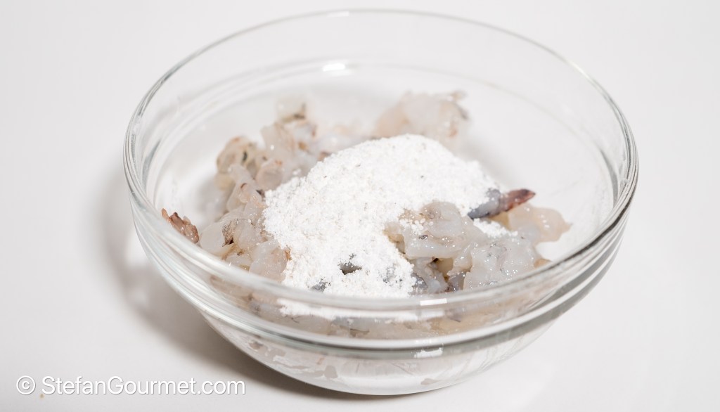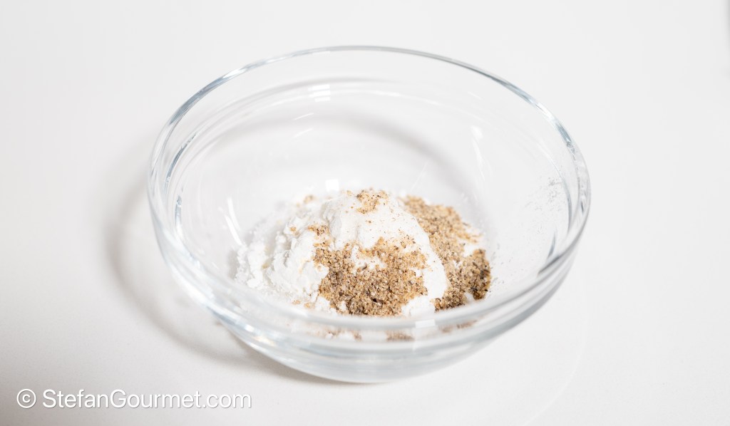 Combine 1 tsp salt, 2 tsp sugar, 2 tsp cornstarch, and 1/2 tsp MSG in a bowl and mix.