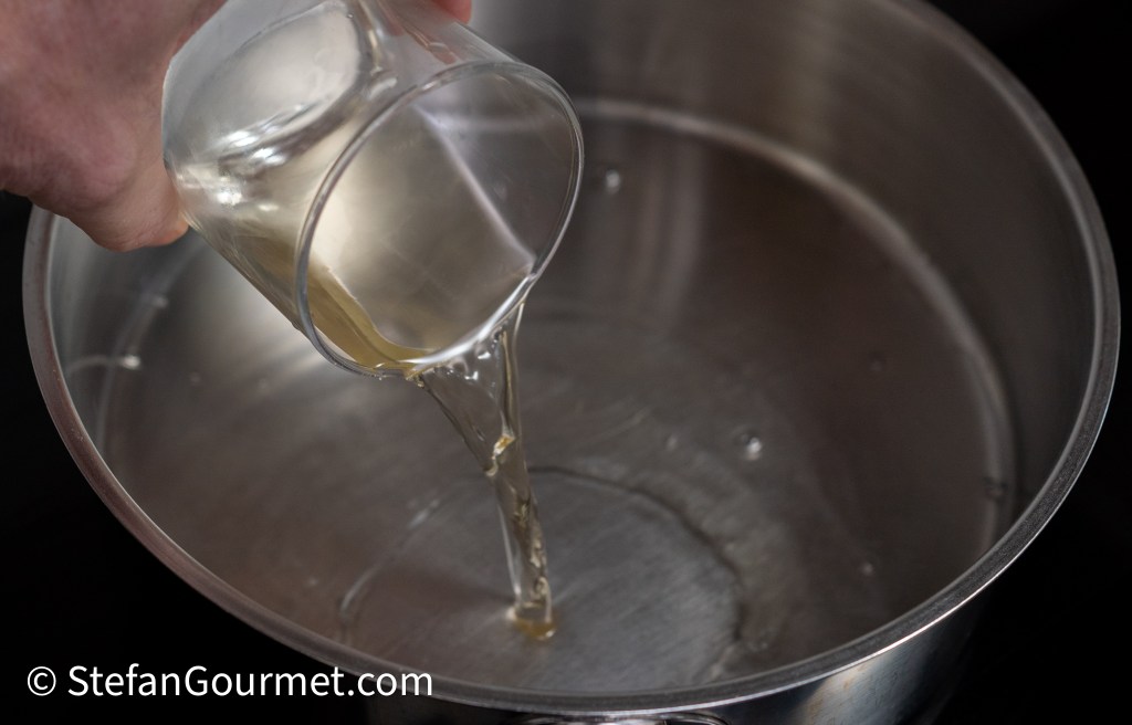 Pour 120 ml of white wine into a pan.