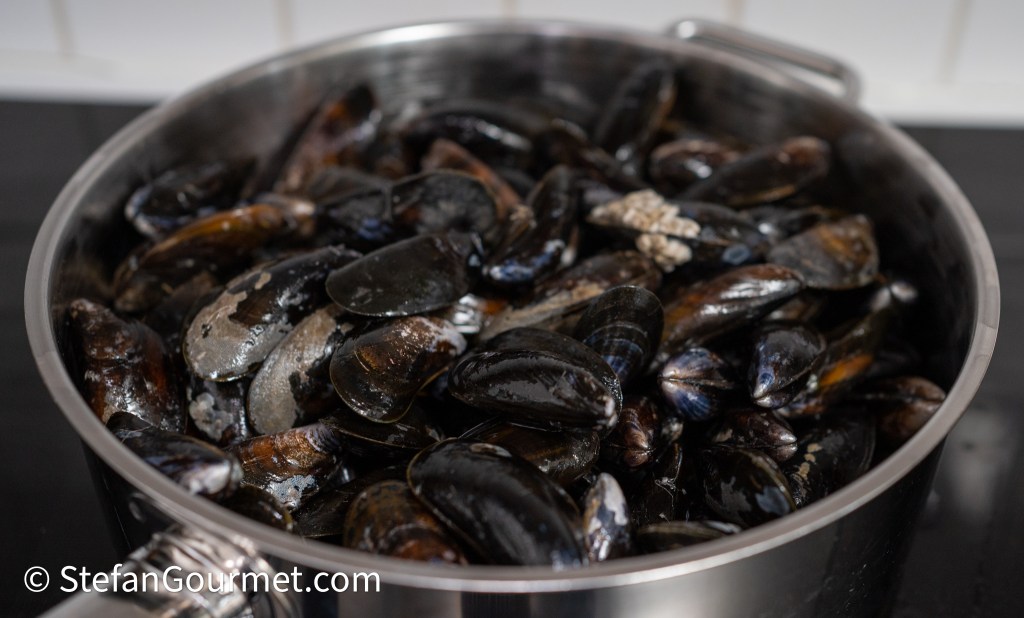 - 500 grams (1.1 lb) mussels in their shells