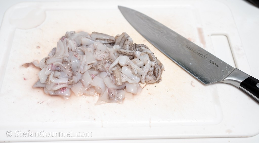 Chop the squid.