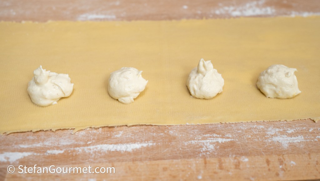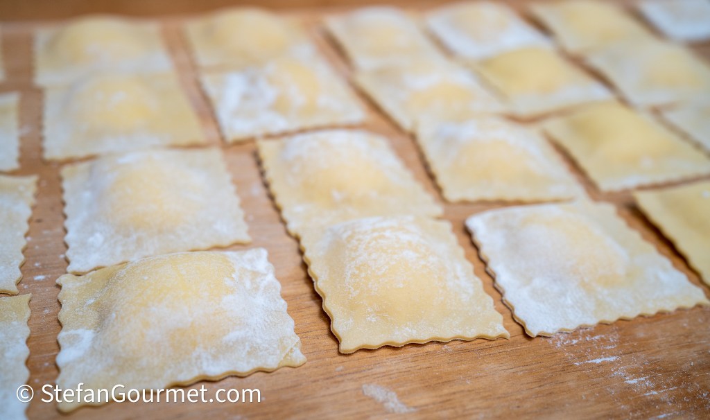 As the filling is quite liquid, it is important to turn the ravioli after a while so they can dry on both sides.