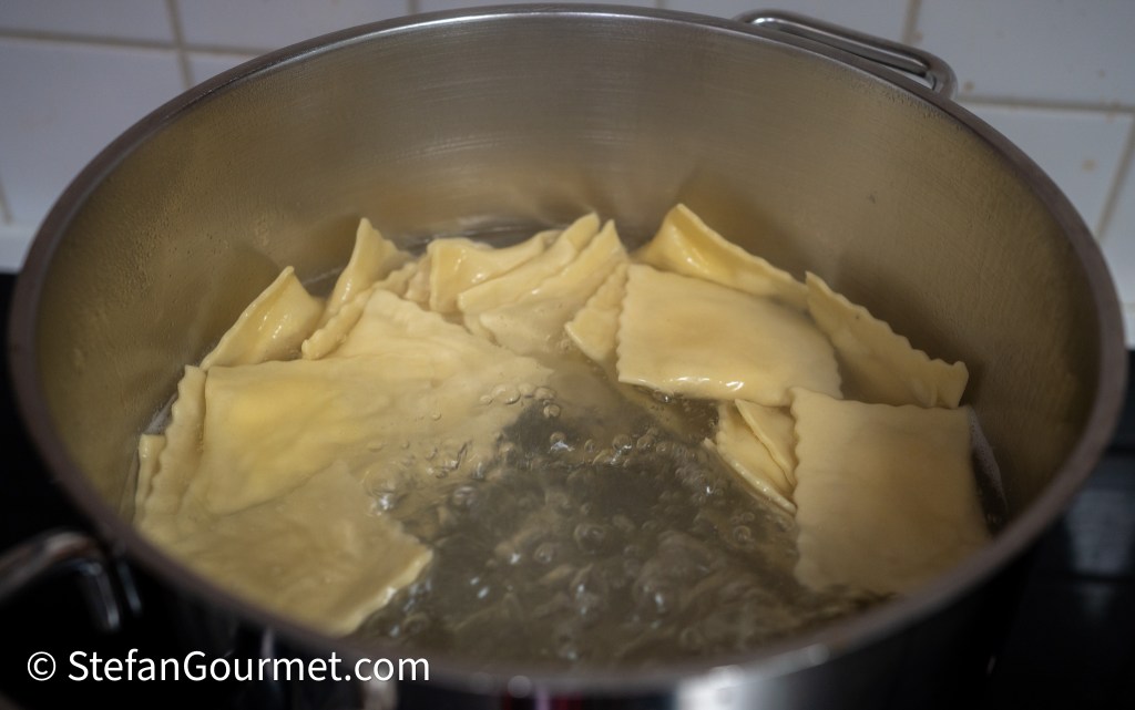 In the meantime, boil the ravioli in plenty of salted water for 2-3 minutes.