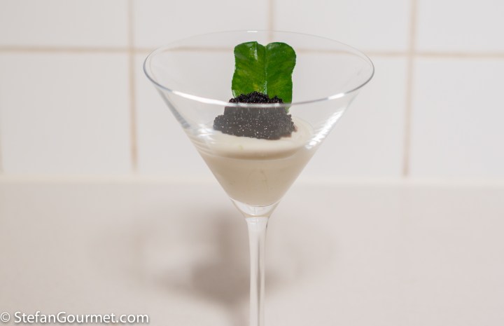 Cauliflower and lime mousse with caviar is a delicious decadent appetizer.