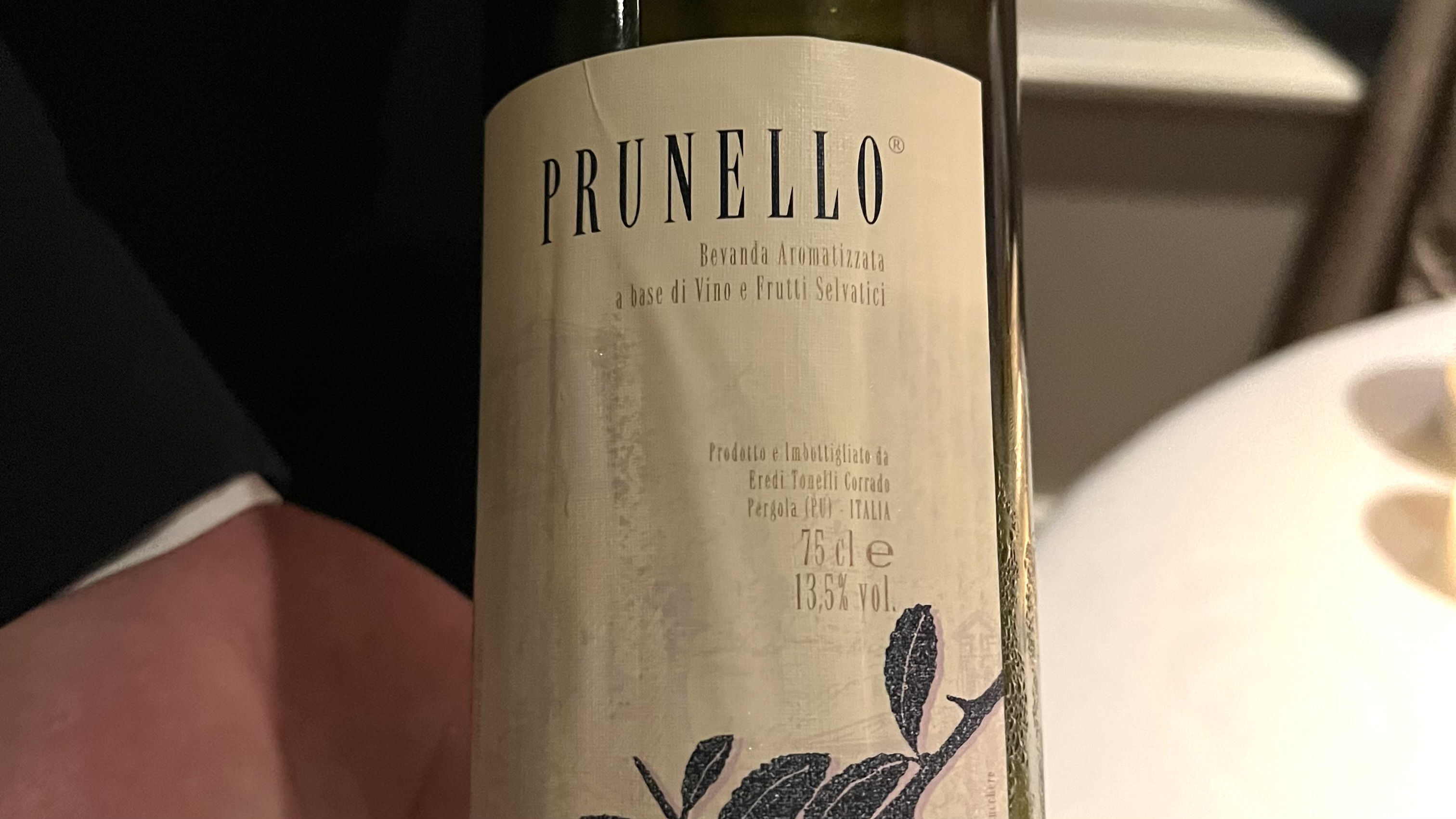 The final pairing is Prunello, wine of Sangiovese and Montepulciano from the Marche, that is enriched with wild Prunello berries and cherries.