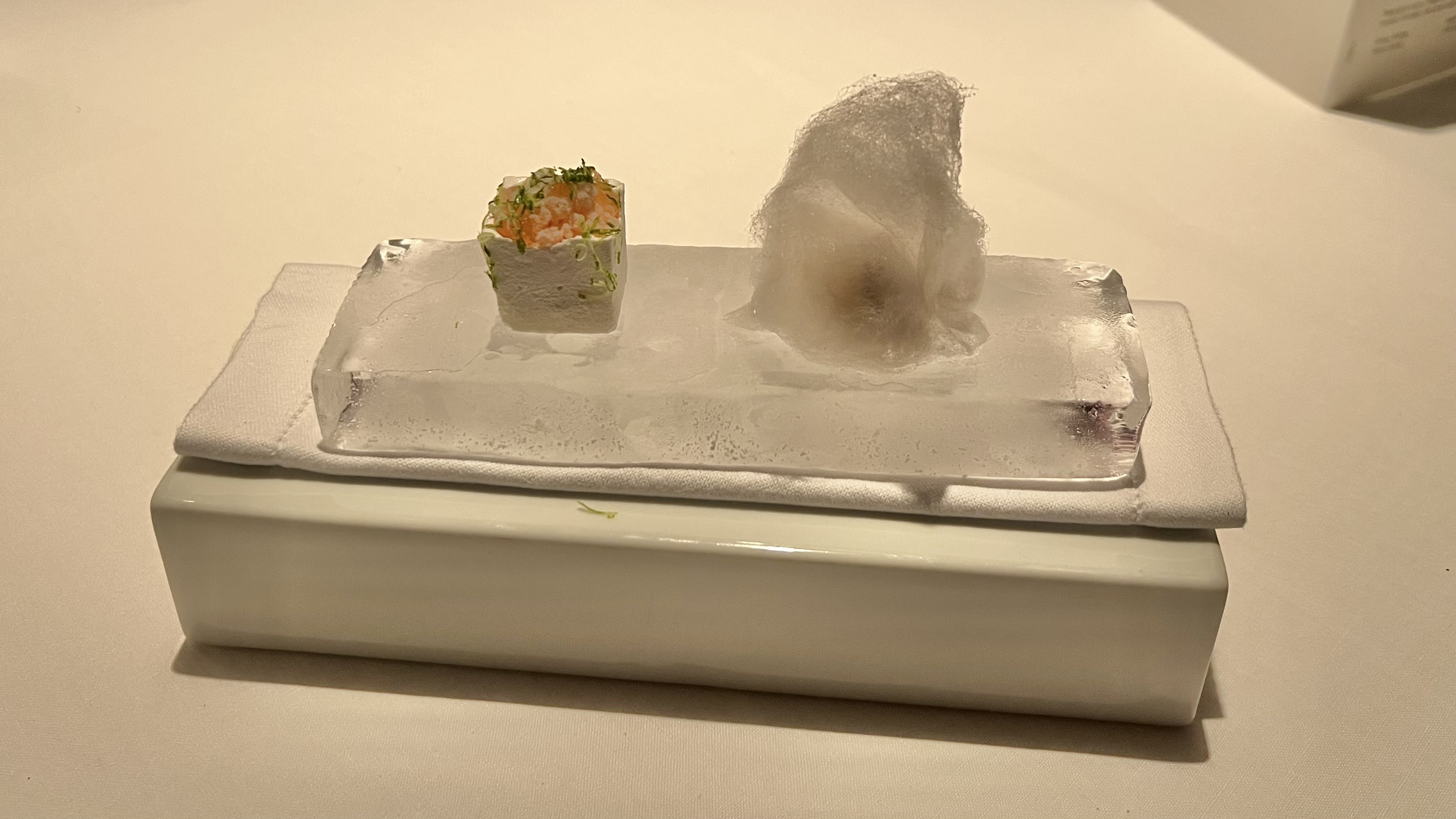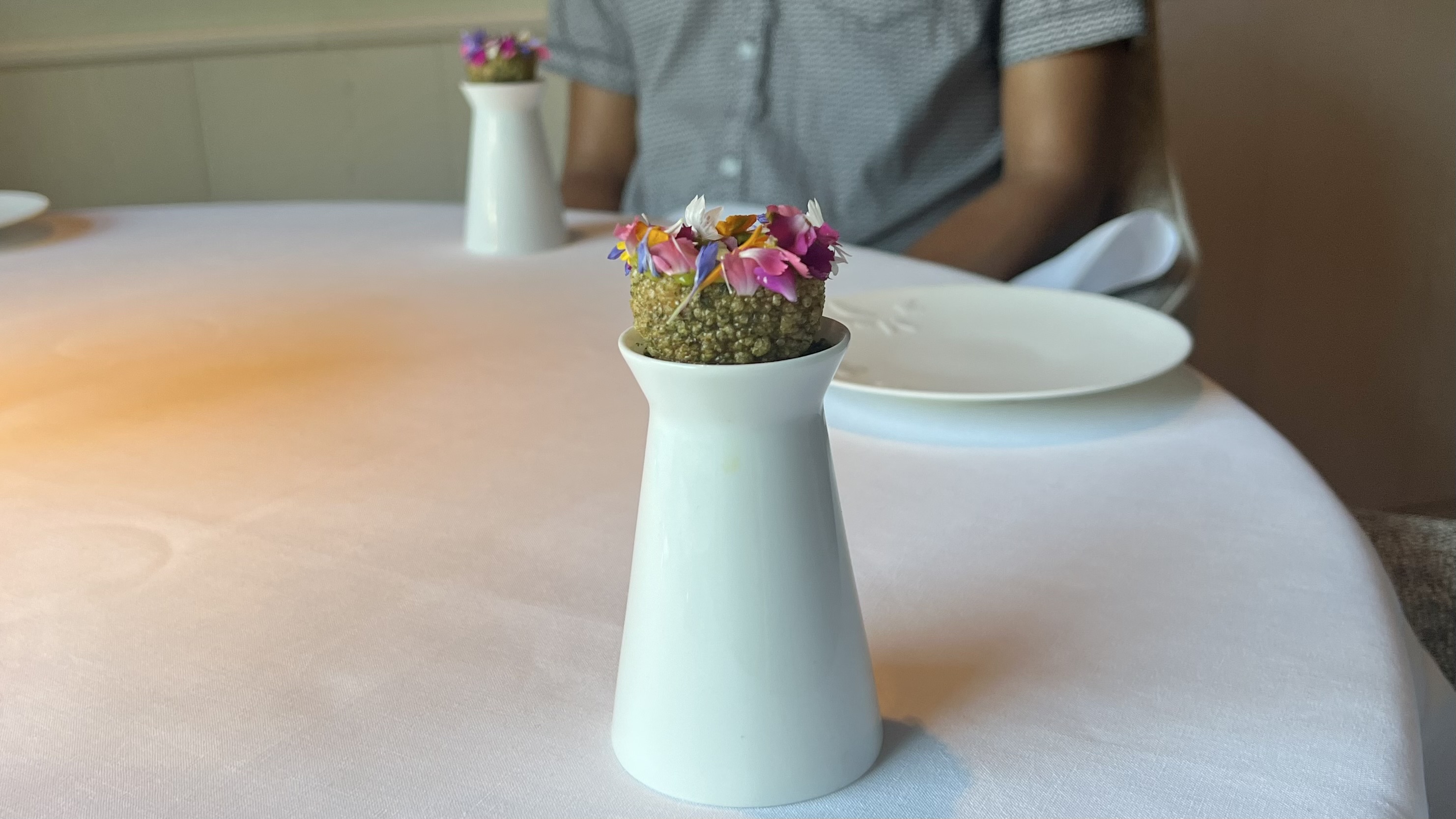 The first amuse bouche was crispy and filled with an ancho chile extraction, avocado, Mexican tarragon, and cherry.