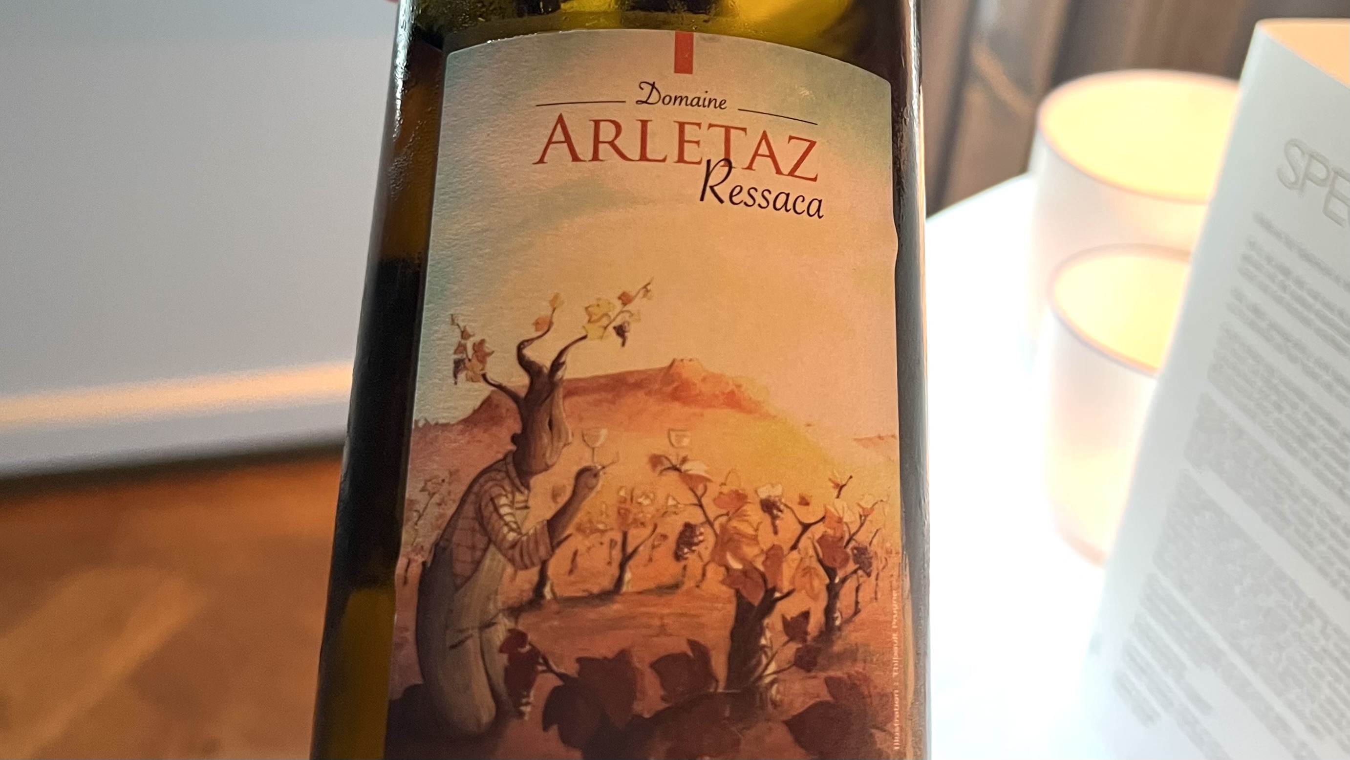 Next was an oaked Grenache Blanc/Gris from Roussillon in France. Another natural wine, but luckily not as outspokenly so as the faux Pouilly-Fumé. This was was enjoyable by itself, but became even better with the dish.