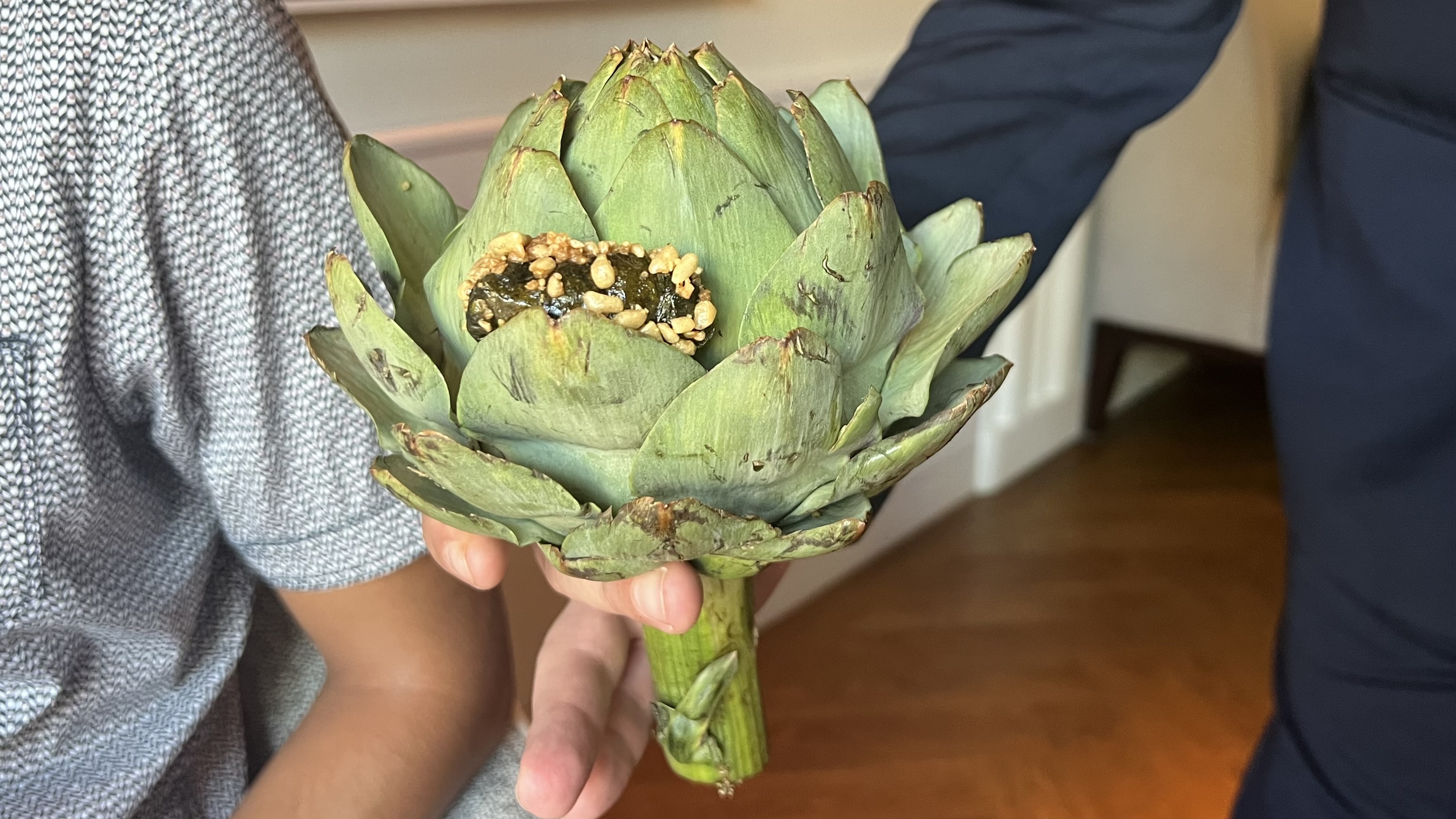 Another food adventure, beautifully photographed to share with us all! The presentations are wonderful; I especially loved the shell and the artichoke!