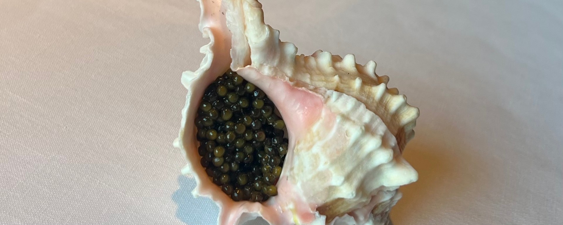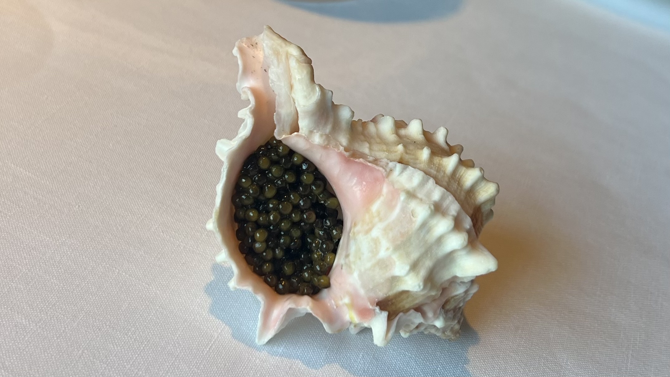 The second of artichoke with lumpfish caviar and grapefruit, was served on an artichoke.