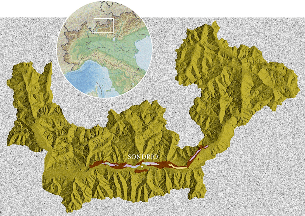 Valtellina Superiore DOCG needs to be aged at least 2 years, of which 1 year in wood. The Riserva must be aged at least 3 years. There are 5 subzones, from West to East they are: Maroggia, Sassella, Grumello, Inferno e Valgella. Although wines from individual subzones have their own DOCG (e.g. Valtellina Superiore Sassella DOCG), the subzones do not really have a strong character that is easy to recognize. This is because Valtellina has a complex terroir due to the fault line, and differences between terraces within a subzone can be quite large. For one terrace can have much deeper soil than another one in the same subzone. However, as the name implies, Inferno is the hottest subzone.