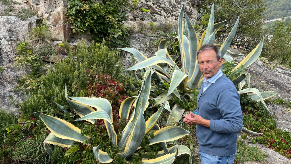 The west-east orientation gives the south-facing slope of the valley a specific microclimate due to the exposure to the sun. Another important factor is the wind from the Como lake that occurs every day. The rocks in the vineyards heat up during the day and release that warmth again during the night. Because of the high mountains on both sides of the valley, there are less clouds, making Valtellina as sunny as Sicily. It is certainly a lot cooler than in Sicily, but it is warm enough for the grapes to ripen and near the vineyards there are also palm trees, cactuses, and olive trees.