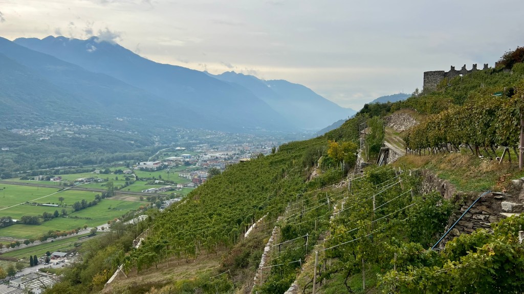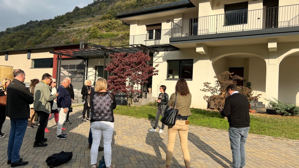 Valtellina is located in the far North of Italy, on the border with Switzerland. It is a valley on the fault line between the tectonic plates of Africa and Europe. The collision of those two tectonic plates has created the Alps. The mountains on both sides of the valley are 3000-4000 meters high (10,000-13,000 feet) and the valley can only be entered from the West side. This is why it was quite a drive from Franciacorta, because we had to drive around the mountains.
