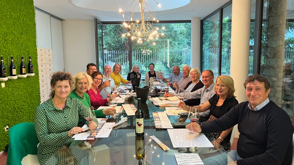 Altogether we tasted 137 different wines during this trip: 21 from Oltrepò Pavese, 16 from Franciacorta, 78 from Valtellina, and 22 from Valcalepio. During the first four days this was an average of 34 wines per day, with a maximum of 57 different wines on the third day. So it was not just fun, but also hard work 🙂 If you now think that we are all alcoholics or were drunk all day, you are mistaken. When we taste wine, we spit most of it out. With lunch and dinner we do drink some wine, but in moderate quantities. It was great to get to know the wines of Lombardia a bit better, and I can’t wait for the next wine trip to Italy with Fred Nijhuis and the VVN.