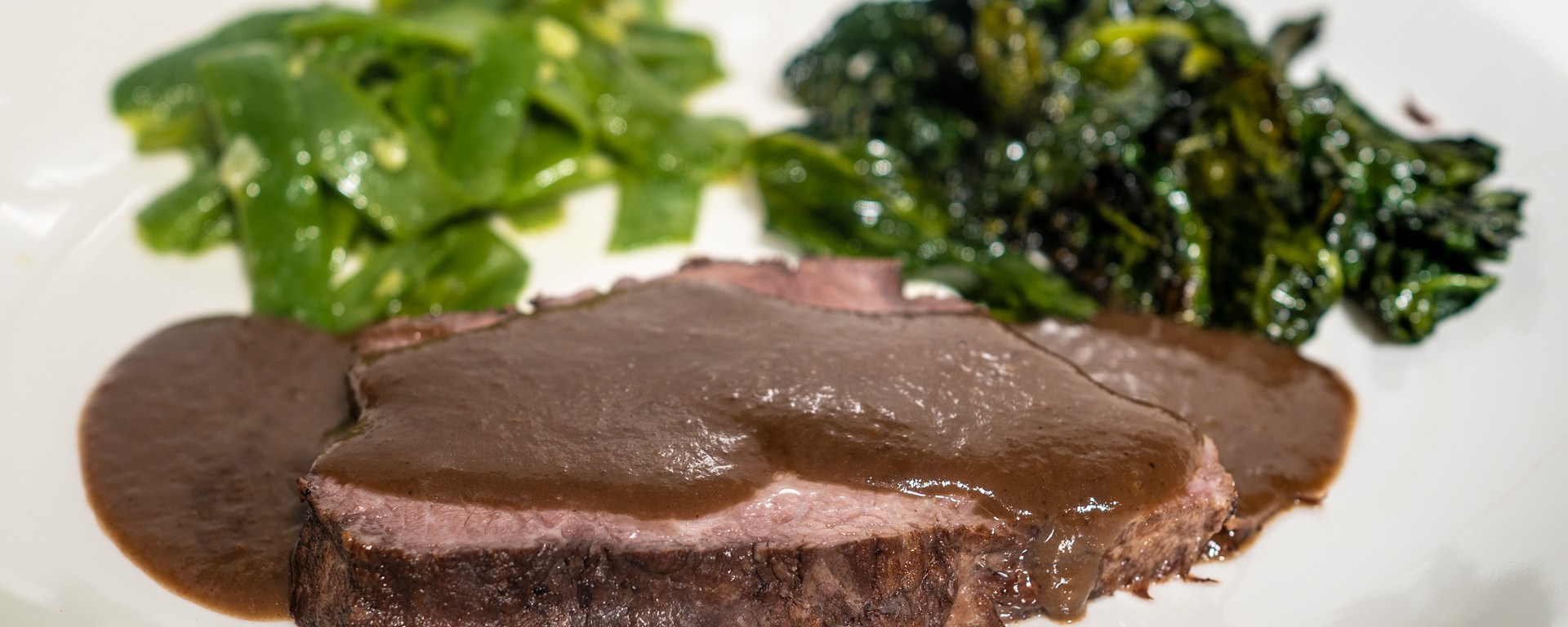This dish is served on special occasions in Italy, so it is perfect for the holidays. You can prepare it in advance, and even freeze it. On the day you are serving it, you will only need to reheat it sousvide (which for a large piece of beef could easily take 4 hours, so make sure to check the minimum time needed in the table here), reduce the sauce, and slice and serve.