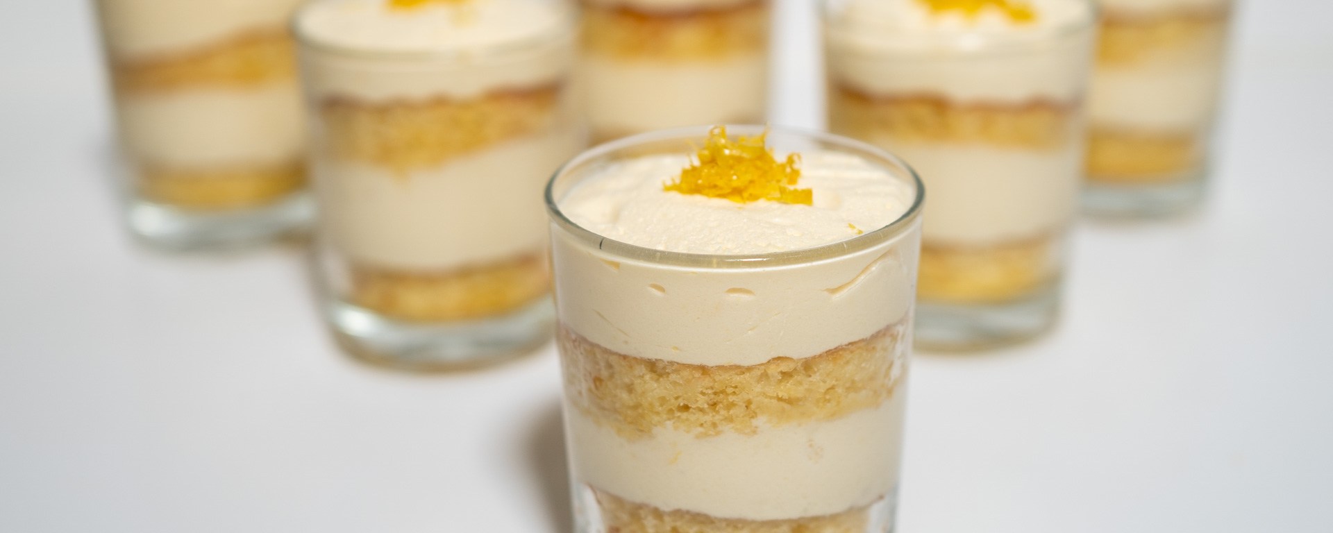 Finish by placing lemon cream on top of the sponge in each tumbler.