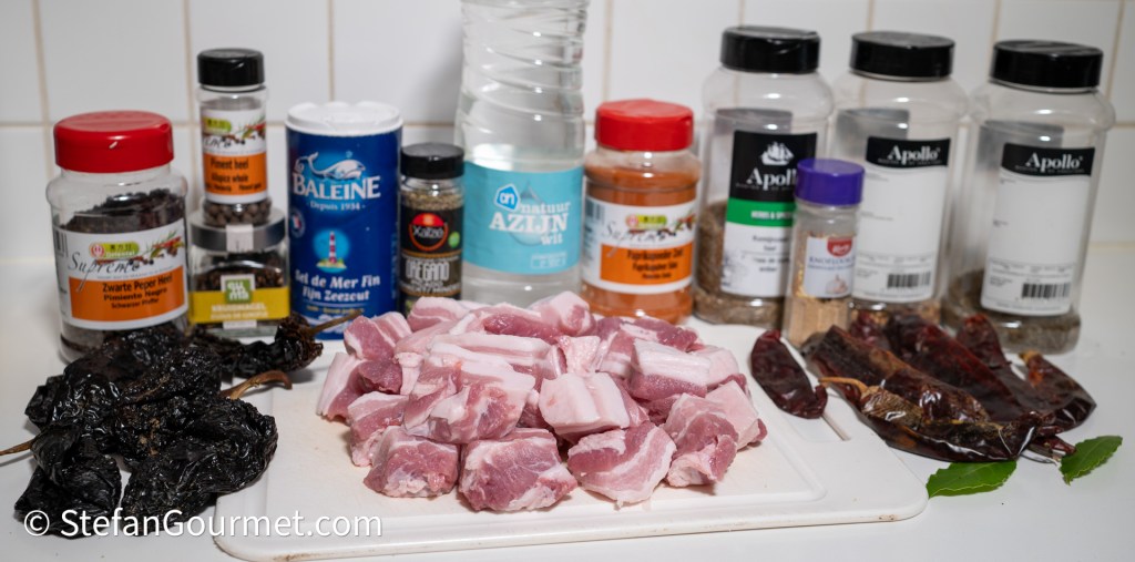 • 1080 grams (2 lbs 6 oz) pork belly without rind, cubed
