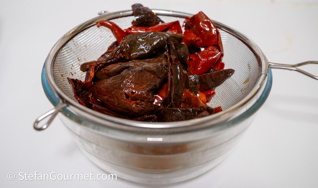 Drain the soaked chiles and discard the soaking water.