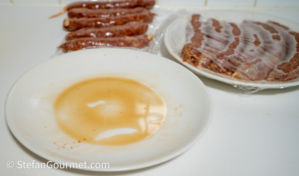 Cover and refrigerate overnight. If you are not going to stuff the meat into casings, your chorizo is already done. To get rid of excess vinegar, place the meat in a sieve lined with an old but clean tea towel for some time. Then vacuum seal it in portions to freeze.