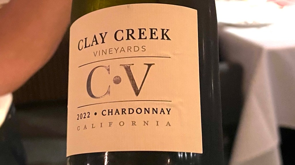 The next wine was a Chardonnay from California, a warm climate style with tropical fruit and some oak. The Meursault was a tough act to follow, but this simpler wine was a better pairing for the next dish…