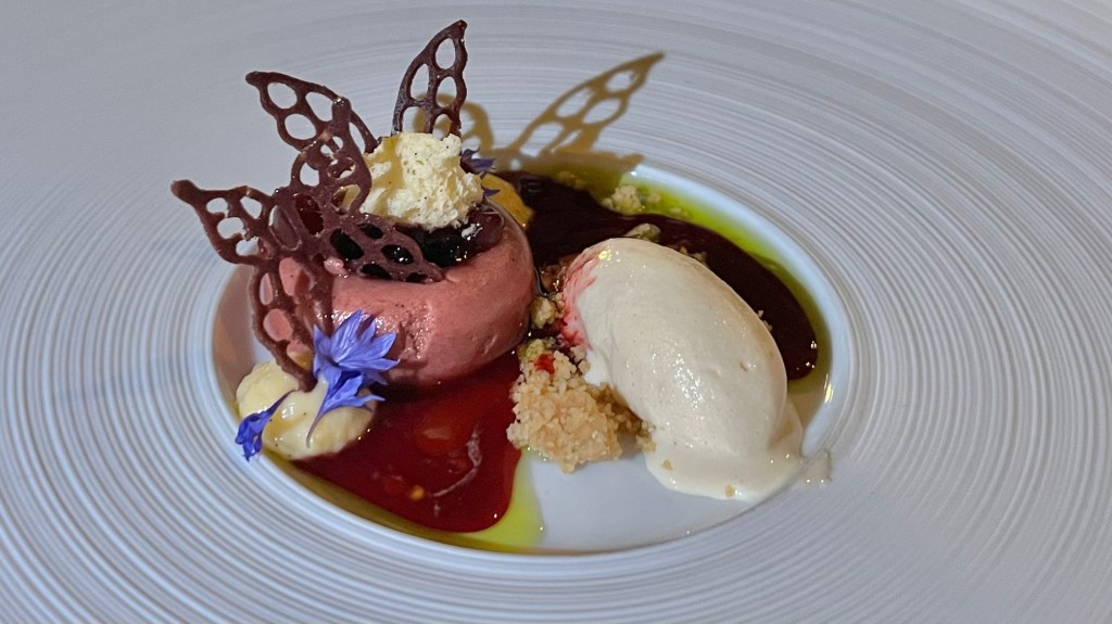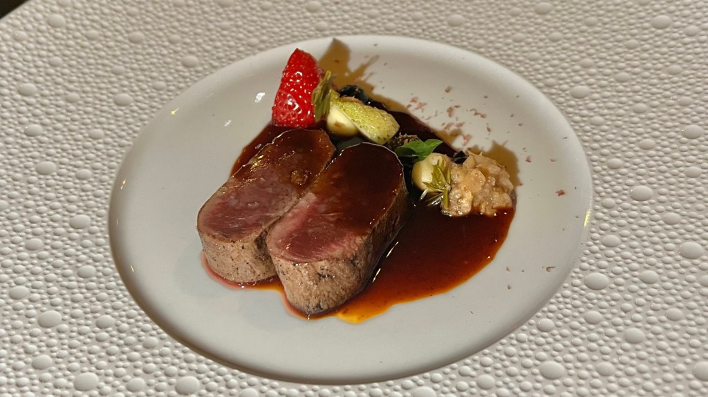It was mostly a good pairing for the roe deer venison with strawberry and pine cone, but had some trouble with the sweeter elements of the dish (parsnip and apple syrup).