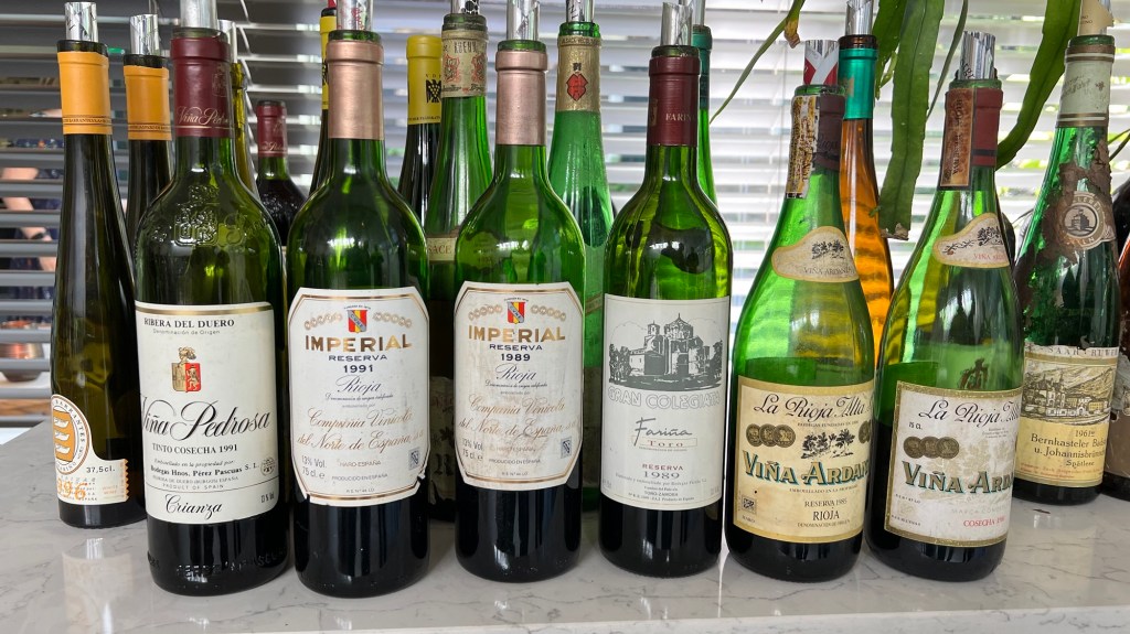 - La Rioja Alta, Viña Ardanza, Rioja Reserva, 1981: brown-red color, still a lot of tannin, acidic.