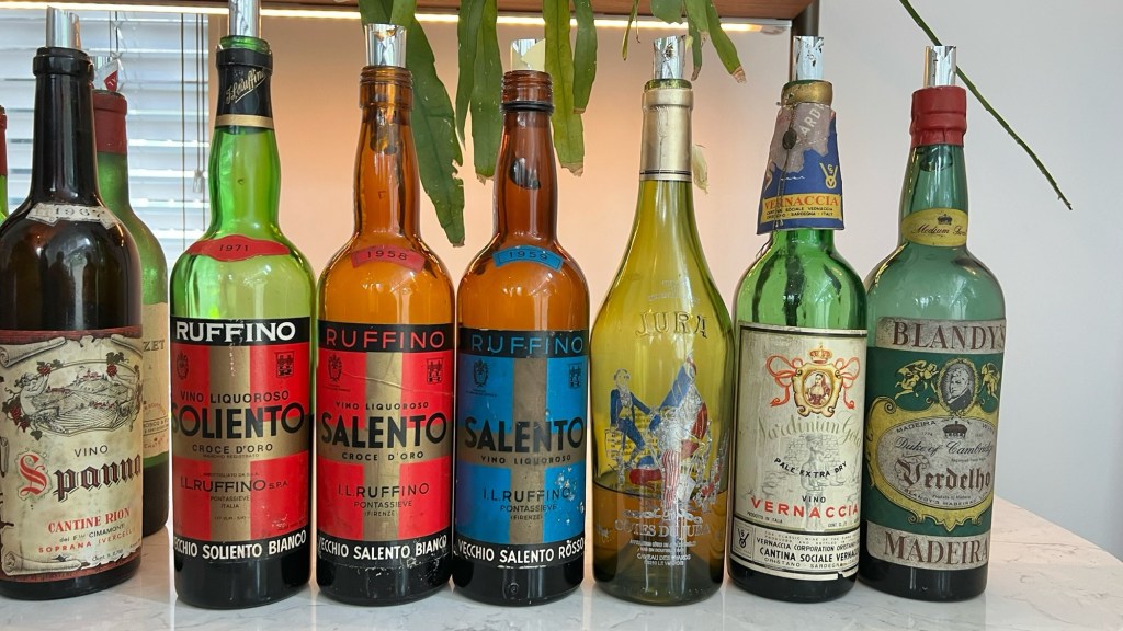 - Ruffino, Croce d’Oro, Vecchio Salento Rosso, 1959, dark brown, more acidic than the other two, and with a bit of an ‘ouwe meuk’ aroma