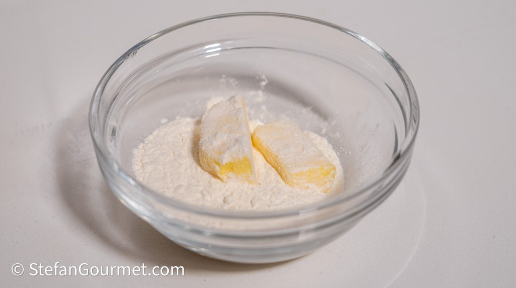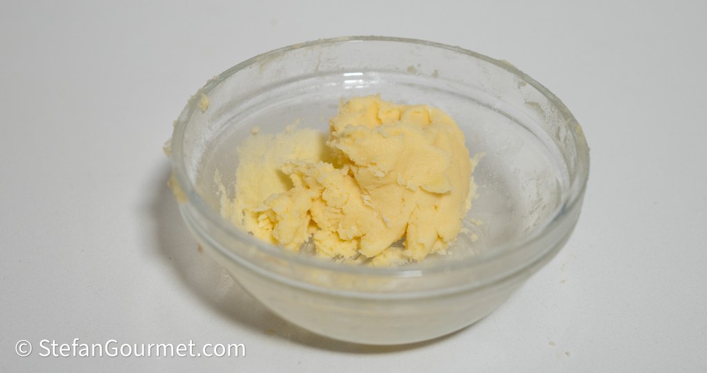 To make the beurre manié, combine 15 grams of butter at room temperature with 15 grams of flour…