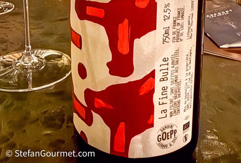 To go with the first course we had a ‘petnat’ from the Alsace in France from 50% Muscat, 40% Auxerrois, and 10% Savagnin Rose. Petnat is short for pétillant naturel, and it means that the final part of the fermentation occurs within the bottle, leaving the carbon dioxide bubbles that are produced by the fermentation in the bottle. Because of the natural wine making, the aromas were quite vegetal.