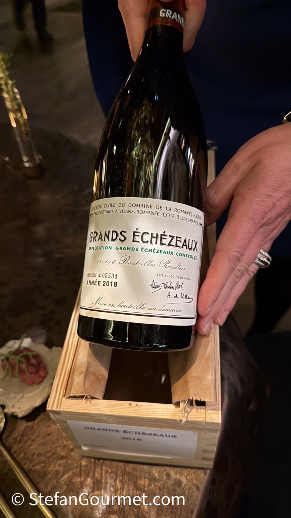 Now it was time for our glass of DRC, a Grand Échézeaux Grand Cru 2018 to be precise. Of course this is 100% Pinot Noir. The Librije offered it by the glass at a ‘reasonable’ price, which still means that one glass costs roughly the same as the rest of the food and wine together. But as a “yolo” experience it was certainly worth it, as I had never tasted DRC before.
