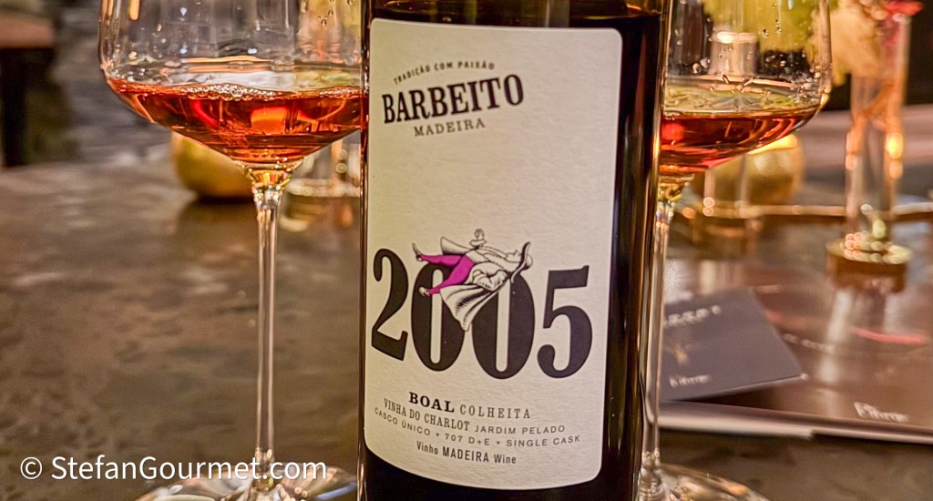 The first dessert wine was a Barbeito Boal Madeira 2005, mildly sweet.
