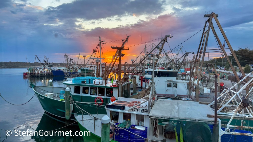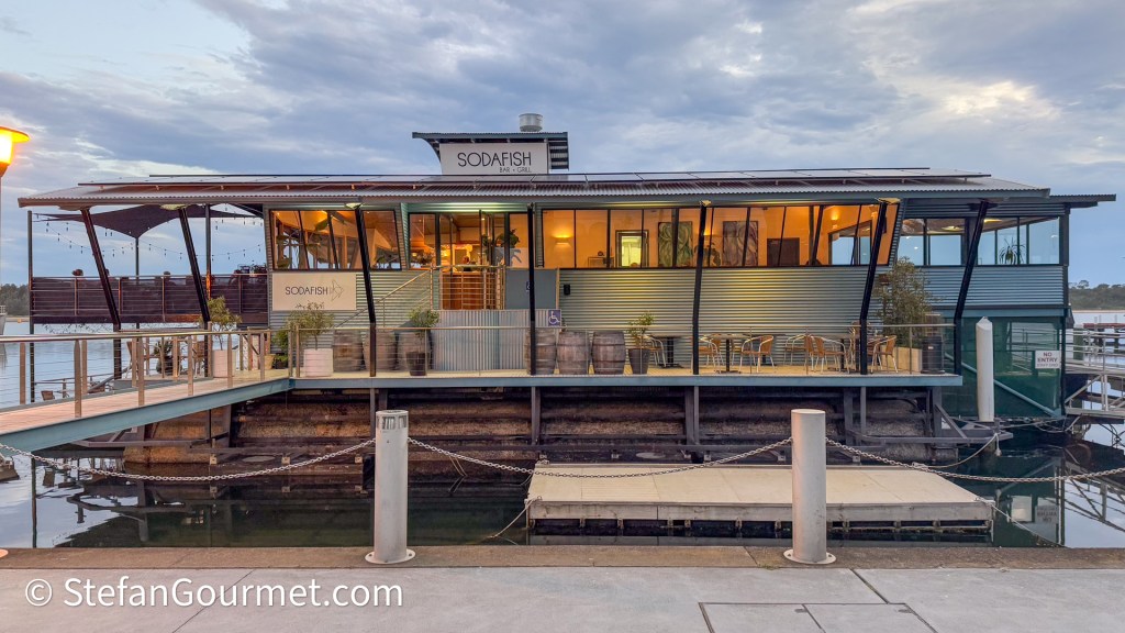 As we were strolling down the Esplanade in Lakes Entrance, Victoria, Australia, we saw a restaurant called Sodafish on a boat and had a look at the menu. We were surprised to see a degustation menu with wine pairing. The menu looked good, so we booked a table for dinner that evening, rather than cooking in the camper.
