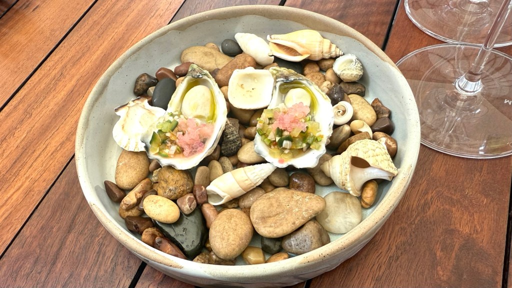 The sparkling was paired with an Albany oyster with finger lime and shallot…