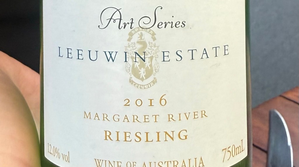Our third and last lunch at a winery in Margaret River is at Leeuwin Estate, to celebrate my birthday. To us as Dutchies it is peculiar to see a winery called “Leeuwin”, because it is a Dutch word (for female lion). The winery has been named after the cape to the south of Margaret River, Cape Leeuwin, which has been named after the Dutch ship that passed here in 1622. We had the six course tasting menu for AU$ 160, with ‘museum’ wine pairing for $115. Museum means older vintages, the pairing with current vintages is $75.